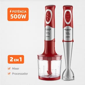 O Power Mixer Red Premium Mondial M-10 é perfeito para quem busca praticidade e versatilidade no dia a dia. Com 500W de potência e função Turbo, ele mistura, tritura e processa alimentos com rapidez e eficiência. Ideal para preparar vitaminas, sopas, caldos, molhos, cremes e triturar grãos, legumes, temperos e muito mais.
