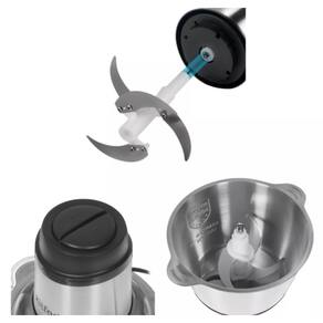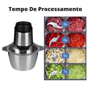 Multiprocessador com 300W de potência, 3L de capacidade, 2 velocidades e função pulsar. Lâminas de metal, corpo de metal e copo de aço inox. Livre de BPA. Inclui espátula. Trava de segurança.Acompanha copo