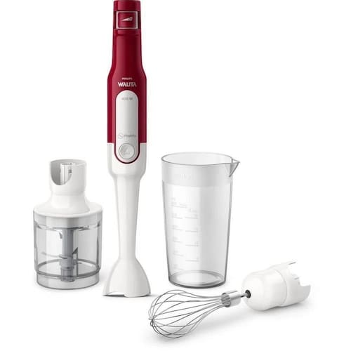 Mixer Philips Walita Pro Mix Deep Red com 400W de potência, copo de 1L, mini processador e batedor dAcompanha copo