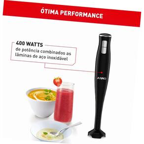 Com potência de |400W|, este mixer é ideal para preparar diversas receitas com agilidade. Acompanha 3 acessórios versáteis que permitem picar, bater e misturar, tornando seu dia a dia na cozinha muito mais prático. O design |compacto| facilita o armazenamento e sua utilização direta em panelas é uma característica que garante eficiência e rapidez.