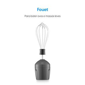 O corpo desmontável facilita o encaixe dos acessórios e a limpeza do aparelho, tornando o processo mais prático. Além disso, o mixer acompanha um copo dosador, auxiliando no preparo e na medida exata dos ingredientes, fouet para bater ovos e massas leves, e processador para 400mL.