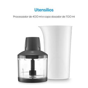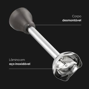 Mixer 3 em 1: mistura, tritura e bate. Lâminas de aço inox de alta performance. Design ergonômico com cabo anatômico. Corpo desmontável para fácil limpeza.Acompanha copo