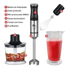 Mixer Turbo 3 em 1 Kian com potência de 1000W, 5 velocidades, função turbo, ideal para misturar, triturar e bater ingredientes.Acompanha copo