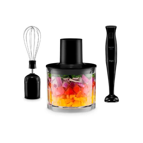 O conjunto mixer Turbo Chef da Elgin possui 200w de potência para misturar ou triturar alimentos em instantes. Ele é 3 em 1: mixer, triturador e batedor de ovos ou massas leves.