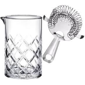 Kit com 1 copo Mixing Glass Barpro 700ml e 1 Coador modelo Hawthorne Strainer em aço inox com 4 apoios Nilos Decor