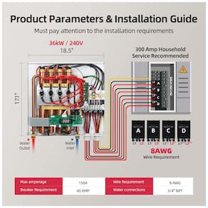 Descubra a eficiência e inovação do Aquecedor Elétrico de Água Instantâneo MIZUDO 36kW 240V. Compacto e poderoso, com dimensões de aproximadamente 43,5 cm de altura, 47 cm de comprimento e 9,4 cm de largura, ele ocupa 87% menos espaço que aquecedores tradicionais com tanque, encaixando-se facilmente em cantos de sua casa.