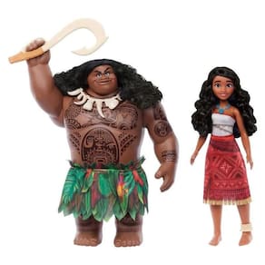 Contém: 1 boneca Moana com look viajante, 1 boneca Maui com saia e 4 acessórios.