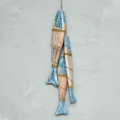 Móbile Decorativo 3 Peixes Madeira Balsa de Bali Móbile Decorativo 3 Peixes Madeira Balsa de Bali O móbile decorativo de peixes é uma ótima escolha para quem quer trazer um pouco da vibe do mar para dentro de casa ou do escritório. Acrescente outros itens marítimos como remos, âncoras e seres marinhos como baleias e deixe qualquer ambiente mais leve. Material: madeira balsa Cores Predominates: Pátina Azul & Marrom Claro Peso: aproximadamente 670gr Altura: total 71cm / De Cada Peixe 46cm, 39cm, 50cm Largura: 10cm Origem: bali O produto é artesanal, fabricado e e por isso torna-se único apresentando pequenas variações de cor, brilho, peso, tamanho. O tom de madeira também pode apresentar variações. Não deixe a sua peça em contato com a água. Limpe-a apenas com pano úmido sem qualquer componente químico. As fotos são ilustrativas. Qualquer produto adicional utilizado na composição da foto deve ser comprado separadamente. Marca: Balisun Ean: 7891026907021