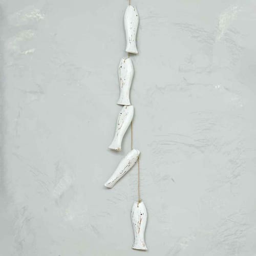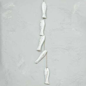 Móbile Decorativo 5 Peixes Madeira Balsa Importado de Bali Branco Móbile Decorativo 5 Peixes Madeira Balsa Importado de Bali Branco
