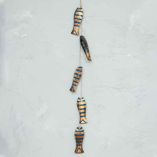 Móbile Decorativo 5 Peixes Madeira Balsa Importado de Bali Marrom & Azul Móbile Decorativo 5 Peixes Madeira Balsa Importado de Bali Marrom & Azul