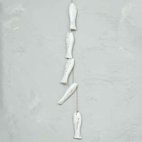Móbile Decorativo 5 Peixes Madeira Balsa Importado de Bali Branco Móbile Decorativo 5 Peixes Madeira Balsa Importado de Bali Branco
