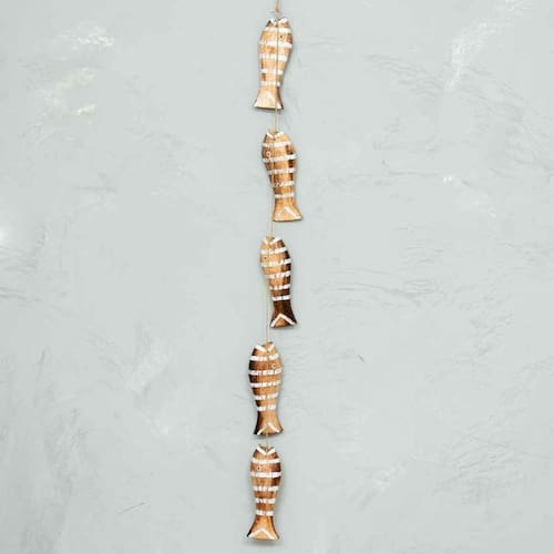 Móbile Decorativo 5 Peixes Madeira Balsa Importado de Bali Marrom & Branco Móbile Decorativo 5 Peixes Madeira Balsa Importado de Bali Marrom & Branco