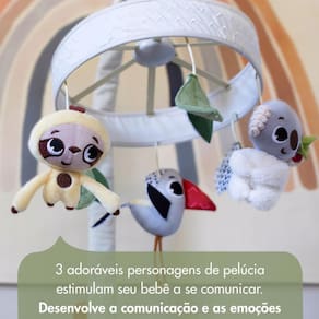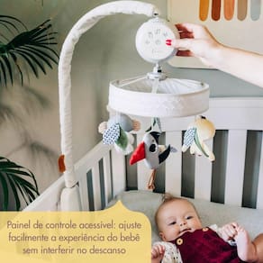 Móbile decorativo que oferece uma grande variedade de recursos como: rotação, LED, melodias suaves, ruído branco, timer e controle volume. Parte da coleção Boho Chic, combinando desenvolvimento e elegância. O único móbile decorativo do mercado que oferece uma variedade tão ampla de recursos e controles eletrônicos. Com adoráveis bichinhos de pelúcia bordados de aparência vintage para se apaixonar, o Móbile Musical Luxe Boho Chic envolve o bebê quando ele acorda e transforma a hora de dormir em uma experiência verdadeiramente mágica. Desfrute de uma ampla variedade de recursos eletrônicos: rotação, 17 melodias suaves, controle de volume, temporizador, luz LED noturna, ruído branco e exclusivo som tranquilizante, que funciona como num passe de mágica!