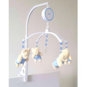 Conteúdo: -Móbile musical e giratórios com 4 ursinhos. -acompanha 1 suporte para fixar no berço e caixa de música à corda sem necessidade de uso de pilha.