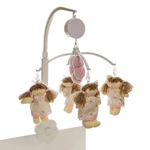 Dados Técnicos Móbile musical com estrutura em plástico decorado com bonequinhas e florzinha de tecido presas com cordão encerado altamente resistente. Algumas peças da decoração central pode ter variações de acordo com a disponibilidade no momento.