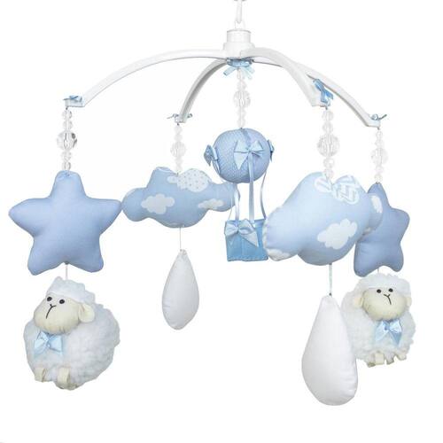Móbile Musical Carneiro, Nuvens E Balão Azul Quarto Bebê Infantil Menino O momento do bebê em seu berço tem que ser relaxante e, ao mesmo tempo, deve ter elementos de entretenimento. O nosso móbile tem uma música agradável que vai embalar o sono dos pequenos e, ao acordar, terá lindos enfeites para entreter-se estimulando a coordenação motora e visual do nenê.Br /br / Dados Técnicosbr / Fixaçãobr / Informações adicionaisbr / Medidasbr /Altura: 55 cmbr /Largura da Haste Decorada: 29 cm x 29 cmbr /Homologação Inmetro: CE-BRI/IQB 006455 55098/22-001