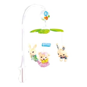 - marca : baby style - possui 3 lindos brinquedos em tecido macio de plush - toca 30 minutos seguidos de música - possui controle de pausa, pular ou voltar música e volume - utliiza 2 pilhas aa não inclusas - material: polipropileno e pelúcia - adaptávem em berços de até 3,5mm
