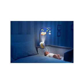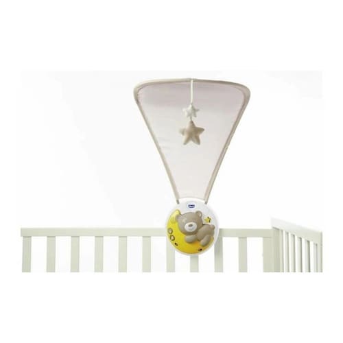 Next2Moon, da linha First Dreams da Chicco, é um móbile de berço especialmente desenvolvido para o berço portátil Next2Me, que também é compatível com a maioria das camas e berços de madeira. Um inovador projetor que cria uma atmosfera mágica e relaxante para o bebê através da projeção colorida no largo dossel
