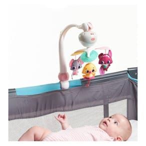 Brinquedo adorável que dá ao bebê uma sensação de familiaridade enquanto está em movimento, relaxando o bebê com músicas relaxantes e movimento lento que estimulam o Coeficiente Emocional ,coordenação motora Conector designado para cada modo de uso: o clipe de fixação universal permite que você pendure o móbile em berços, carrinhos de bebê, cercadinhos ou mesas de cabeceira. Doces personagens da coleção Tiny Princess Tales inspiram e envolvem a imaginação dos bebés em casa e no exterior. Até 30 minutos de música contínua com 5 músicas diferentes. Parte da coleção Tiny Princess Tales. O desenvolvimento nunca pareceu tão adorável. Prendedor de carrinho grande Prendedor de gancho e laço. O acessório universal é compatível com varios modelos de berços e carrinhos de passeio. Recomendável de 0 a 5 meses. Certificação INMETRO CE/INNAC 00156-000 NM 300/2002
