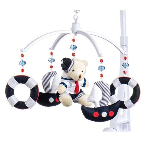 O Móbile para berço musical e giratório Urso Marinheiro é o acessório ideal para dar o toque final na decoração do quarto do bebê. Possui uma doce melodia para acalma-lo, tão doce quanto uma canção de ninar da mamãe. Além disso, o móbile é giratório buscando estimular a interação da criança com o objeto. Características: - Produto de Fabricação Nacional - Pelúcias antialérgicas - Peças são presas com cordão encerado altamente resistente. - A estrutura em plástico não tóxico pode ser fixada no berço, chiqueirinho, ou qualquer plataforma através de rosca ajustável. - Possui sistema giratório movido à corda. não utiliza pilhas. - O tempo da música pode variar entre 1:30 e 2:00 minutos. - A montagem é fácil e segura, atarraxar com firmeza na lateral do berço ou chiqueirinho do bebê. Especificações Técnicas: - Dimensões do produto (C x L x A): 40cm x 30cm x 45cm - Material: Plástico - Cor: Azul - Modelo: Urso Marinheiro - Marca: Sleepbaby Móbiles - Certificação: INMETRO CEBRI/BRICS0056717 Observação: Todos os nossos produtos passaram pelo rigoroso teste do Inmetro sendo aprovados e certificados. No Brasil é obrigatório o selo do Inmetro em qualquer produto destinado a crianças. não brinque com a segurança do seu bebê. Não compre produtos que não foram testados e aprovados pelo Inmetro.