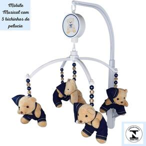 Mobile para berço bebê musical urso soneca Marca: erich baby Produto certificado pelo inmetro Ce-bri/iqb - 6437 nm 300/2002 Segurança do brinquedo O móbile é um item muito importante na decoração, bastante gracioso, meigo e lúdicoSeu movimento vai entreter o bebê dentro do bercinho, ideal para embalar o sono do nenémOs móbiles musicais são ótimos para estimular audição e visão do bebê. Não é a toa que eles são pendurados acima do seu amor. Especialistas dizem que os móbiles ainda estimulam o senso de direção e lateralidade, fazendo com que a criança acompanhe o objeto de um lado para o outro. Pensando em todos os benefícios para o bebê, a montagem do móbile é feita com os ursinhos olhando para baixo, para o bebê visualizar o ursinho por completo e estimula-lo ainda mais. Conteúdo: - mobile musical e giratório com 4 bichos de pelúcia - acompanha 1 suporte para fixar no berço e caixa de música à corda sem necessidade de uso de pilha. Contém a trava de interrupção, a canção dura em média de 2 a 3 minutos. Cores e estampas podem ser alteradas segundo nosso estoque. Medidas: - bichinho de pelúcia 9 cm - suporte móbile: Altura: 55.00 cm Largura: 35.00 cm Comprimento: 45.00 cm Peso: 360 gramas Modo de montar: O suporte se encaixa em qualquer berço desmontável, chiqueirinho, carrinho e berço americano. Basta encaixar as peças e rosquear no berço que o móbile estará preso. Limpeza: Basta limpar com pano úmido. Embalagem: Largura 22,00 cm Altura 8,00cm Comprimento 31,00 cm Peso 500,00 g Marca: Erich Baby