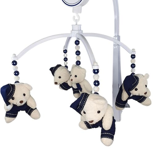 Mobile para berço bebê musical urso soneca Marca: erich baby Produto certificado pelo inmetro Ce-bri/iqb - 6437 nm 300/2002 Segurança do brinquedo O móbile é um item muito importante na decoração, bastante gracioso, meigo e lúdico Seu movimento vai entreter o bebê dentro do bercinho, ideal para embalar o sono do neném Os móbiles musicais são ótimos para estimular audição e visão do bebê. Não é a toa que eles são pendurados acima do seu amor. Especialistas dizem que os móbiles ainda estimulam o senso de direção e lateralidade, fazendo com que a criança acompanhe o objeto de um lado para o outro. Pensando em todos os benefícios para o bebê, a montagem do móbile é feita com os ursinhos olhando para baixo, para o bebê visualizar o ursinho por completo e estimula-lo ainda mais. Conteúdo: - mobile musical e giratório com 4 bichos de pelúcia - acompanha 1 suporte para fixar no berço e caixa de música à corda sem necessidade de uso de pilha. Contém a trava de interrupção, a canção dura em média de 2 a 3 minutos. Cores e estampas podem ser alteradas segundo nosso . Medidas: - bichinho de pelúcia 9 cm - suporte móbile: Altura: 55.00 cm Largura: 35.00 cm Comprimento: 45.00 cm Peso: 360 gramas Modo de montar: O suporte se encaixa em qualquer berço desmontável, chiqueirinho, carrinho e berço americano. Basta encaixar as peças e rosquear no berço que o móbile estará preso. Limpeza: Basta limpar com pano úmido. Embalagem: Largura 22,00 cm Altura 8,00cm Comprimento 31,00 cm Peso 500,00 g Marca: Não Informado