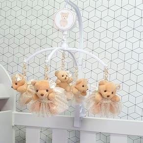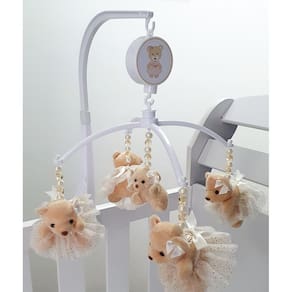Mobile para Berço Bebê Musical Ursa Bege MARCA: ERICH BABY Produto Certificado pelo Inmetro CE-BRI/IQB - 6437 NM 300/2002 Segurança do brinquedo O móbile é um item muito importante na decoração, bastante gracioso, meigo e lúdico Seu movimento vai entreter o bebê dentro do bercinho, ideal para embalar o sono do neném Os móbiles musicais são ótimos para estimular audição e visão do bebê. Não é a toa que eles são pendurados acima do seu amor. Especialistas dizem que os móbiles ainda estimulam o senso de direção e lateralidade, fazendo com que a criança acompanhe o objeto de um lado para o outro. Pensando em todos os benefícios para o bebê, a montagem do móbile é feita com os ursinhos olhando para baixo, para o bebê visualizar o ursinho por completo e estimula-lo ainda mais. Conteúdo: - Mobile musical e giratório com 4 bichos de pelúcia - Acompanha 1 suporte para fixar no berço e caixa de música à corda sem necessidade de uso de pilha. Contém a trava de interrupção, a canção dura em média de 2 a 3 minutos. Cores e estampas podem ser alteradas segundo nosso . Medidas: - Bichinho de pelúcia 9 cm - Suporte móbile: Altura: 55.00 cm Largura: 35.00 cm Comprimento: 45.00 cm Peso: 360 gramas Modo de montar: O suporte se encaixa em qualquer Berço desmontável, Chiqueirinho, Carrinho e Berço Americano. Basta encaixar as peças e rosquear no berço que o móbile estará preso. Limpeza: Basta limpar com pano úmido. Embalagem: Largura 22,00 cm Altura 8,00cm Comprimento 31,00 cm Peso 500,00 g Marca: Não Informado