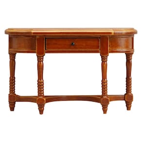 Tamanho: comprimento 12 cm x largura 4 cm x altura 7,6 cm Material: madeira Peso: 75 g Esta meia mesa em miniatura com gaveta é perfeita para adicionar um toque elegante à sua casa de bonecas ou teatro em escala 1:12. Feito de madeira de alta qualidade com um rico acabamento marrom, apresenta detalhes intrincados e uma gaveta funcional. Ideal para criar uma configuração vintage de sala de estar, quarto ou corredor em sua casa em miniatura. Não é para crianças pequenas: este é um modelo de brinquedo e peças pequenas podem representar risco de asfixia ou causar ferimentos. Nota sobre o produto: Este conjunto foi projetado para uso em casas de bonecas e não para uso humano real. Ele se encaixa perfeitamente em casas de bonecas e miniaturas em escala 1:12.