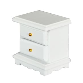 Tamanho: 5,5 cm de comprimento, 3,9 cm de largura, 5,1 cm de altura Material: madeira Peso: 55 g Design branco elegante: mesa de cabeceira em miniatura com duas gavetas douradas, adicionando um toque de elegância às configurações do quarto ou sala de estar da casa de bonecas. Material de alta qualidade: feito de madeira durável com acabamento pintado liso, bordas seguras e detalhes realistas para uma brincadeira de fingir envolvente. Escala e compatibilidade: perfeitamente projetado para minicasas e casas de bonecas em escala 1:12, aprimorando cenas de brinquedos de quarto, sala de estar ou teatro. Nota importante: Este produto é apenas um modelo de brinquedo, não destinado ao uso humano real. Brinquedo não infantil — evite riscos de asfixia ou ferimentos. RPG imaginativo: incentiva a criatividade, a narrativa e a diversão com dramatizações, ao mesmo tempo em que enriquece as coleções de móveis de casas de bonecas com acessórios realistas.