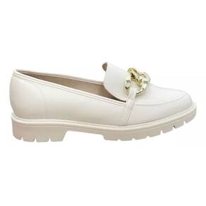 O Mocassim Beira Rio Tratorado Feminino Branco Off, confeccionado em material sintético, aplicação de corrente decorativa no cabedal e bico redondo. Possui palmilha macia com forro, solado tratorado flexível, emborrachado com frisos antiderrapantes para garantir maior segurança e conforto ao caminhar.