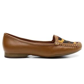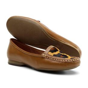Mocassim de Couro Feminino Estampa Marrom Animal Print Palmilha Conforto Macia Trabalho - 36 - Marrom Cacau