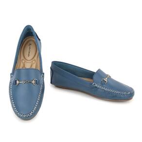 Mocassim Dockside Feminino Couro Cabedal Metal Bico Redondo - 35 - Azul Claro