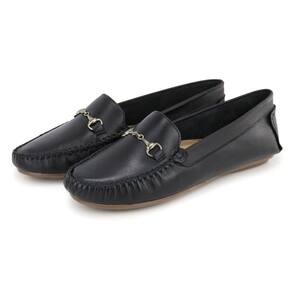 Mocassim Dockside Feminino Couro Cabedal Metal Bico Redondo - 41 - Preto