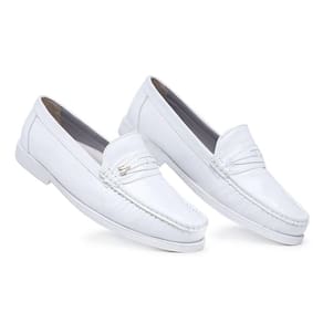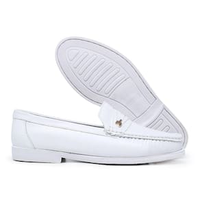 Mocassim Em Couro Masculino Moda Casual Sola Macia Costura Reforçada Passeio - 38 - Branco