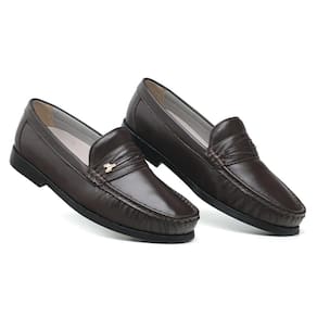Mocassim Em Couro Masculino Moda Casual Sola Macia Costura Reforçada Passeio - 44 - Marrom