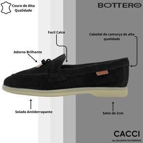 Disponível em cores clássicas como Preto, Caramelo e Cinza, e numeração do 33 ao 40, o Mocassim Feminino Camurça Conforto Bottero 360802 é a peça chave que faltava no seu guarda-roupa.