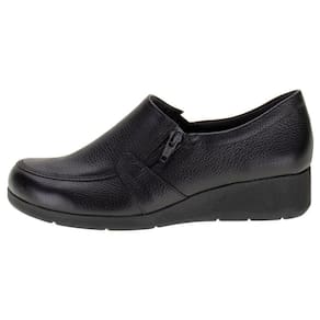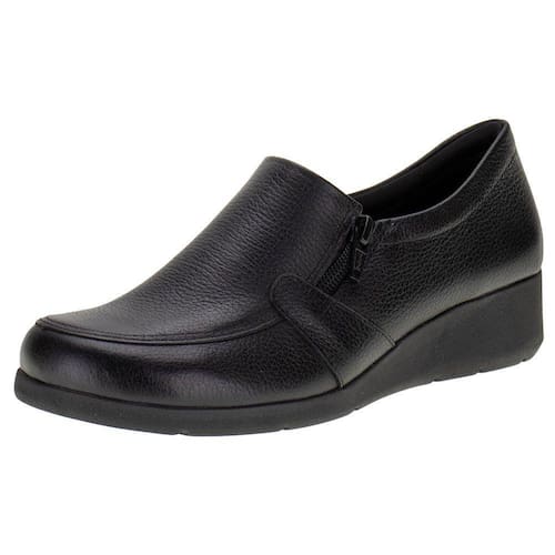 O Mocassim Feminino ComfortFlex é confeccionado em Couro de alta qualidade com acabamento em costura, forro interno em têxtil, palmilha em PU e solado em borracha antiderrapante com salto de quatro centímetros.