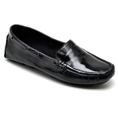 Mocassim Feminino Couro Bico Redondo Verniz Confortável - 34 - Preto