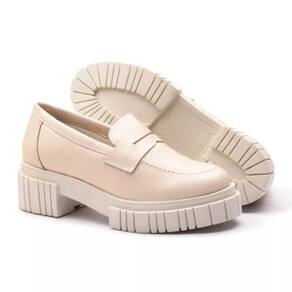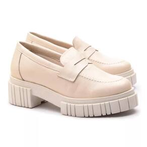Mocassim Feminino em Couro Tratorado Casual Moda Confortável - 37 - Bege Claro
