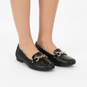 Descubra o Mocassim Feminino Moleca 5737.211 Preto Fivela, o calçado ideal para mulheres que buscam conforto, elegância e versatilidade no dia a dia. Com design sofisticado em tom preto, esse mocassim apresenta um acabamento texturizado com detalhe em verniz na parte frontal, valorizado por uma fivela dourada que empresta um toque de requinte.