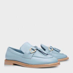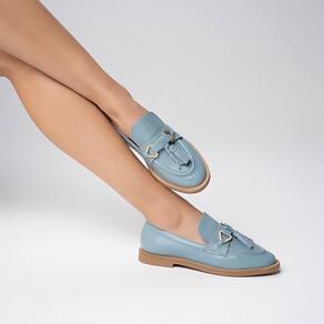 Mocassim, também conhecido como loafer, de couro. O modelo tem salto baixo bloco de madeira e bico redondo. Fechado, traz recorte lateral na gáspea e aplicação de tira de couro com bridão e barbicachos sobre o cabedal. FEITO EM COURO.