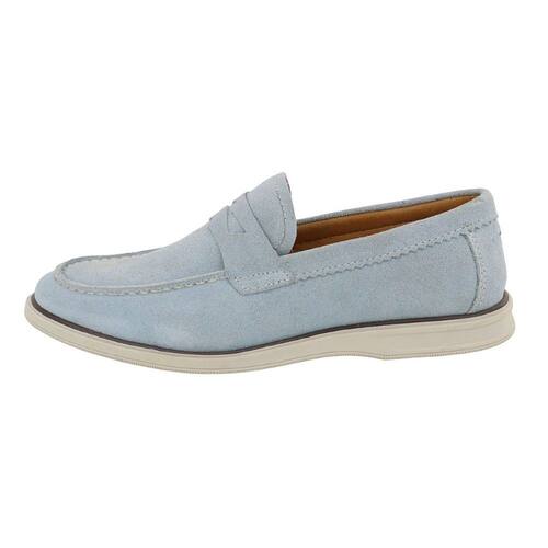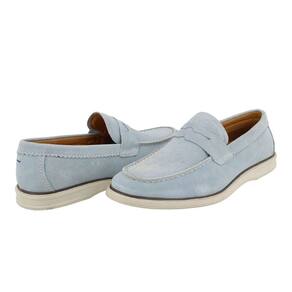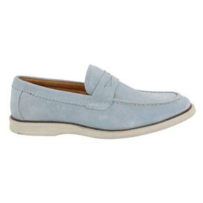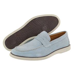 Mocassim Loafer Masculino Couro Camurça Nobre Calce Facil Old Money Solado TR Confortavel Macio - 37 - Azul Claro