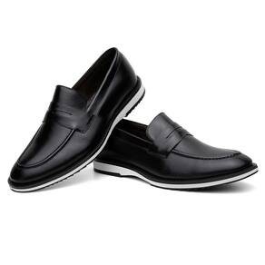 Mocassim Masculino Couro Bico Redondo Calce Fácil Casual - 44 - Preto