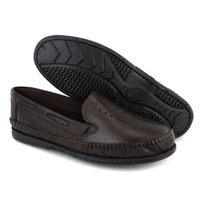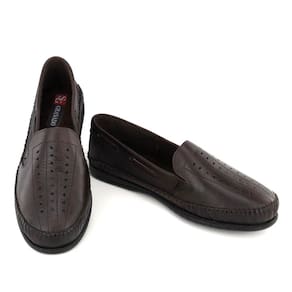 Mocassim Masculino Couro Perfuros Calce Fácil Casual - 41 - Marrom Cacau