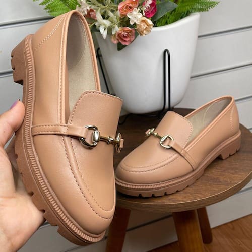 Mocassim tratorado beira rio com palmiha macia, detalhe em fivela, bico arrendondado