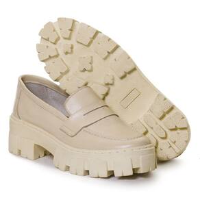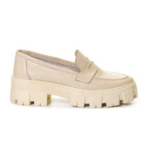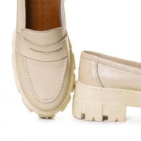 Mocassim Tratorado Couro Feminino Tendencia Blogueira Solado Borracha Confortavel - 39 - Bege médio