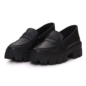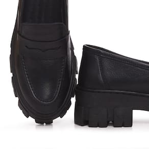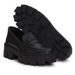 Mocassim Tratorado Couro Feminino Tendencia Blogueira Solado Borracha Confortavel - 40 - Preto