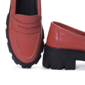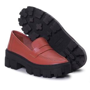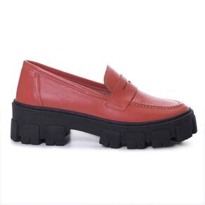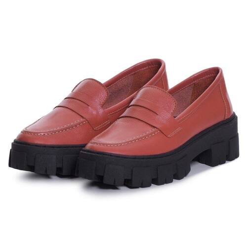 Mocassim Tratorado Couro Feminino Tendencia Blogueira Solado Borracha Confortavel - 38 - Laranja