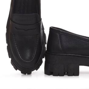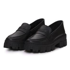 Mocassim Tratorado Couro Feminino Tendencia Blogueira Solado Borracha Confortavel - 38 - Preto