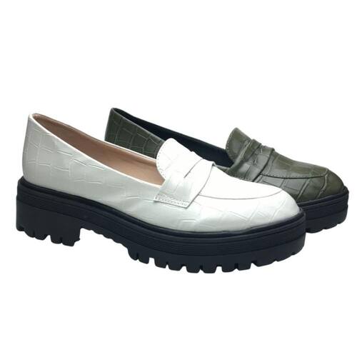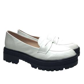 Modelo: Mocassim tratorado croco Cor: off white Altura Solado: 4 cm. Material:croco Formato do bico: arredondado. Peso par: 600 gramas. Peso com embalagem: 740 gramas. Marca: JAMES MENDES